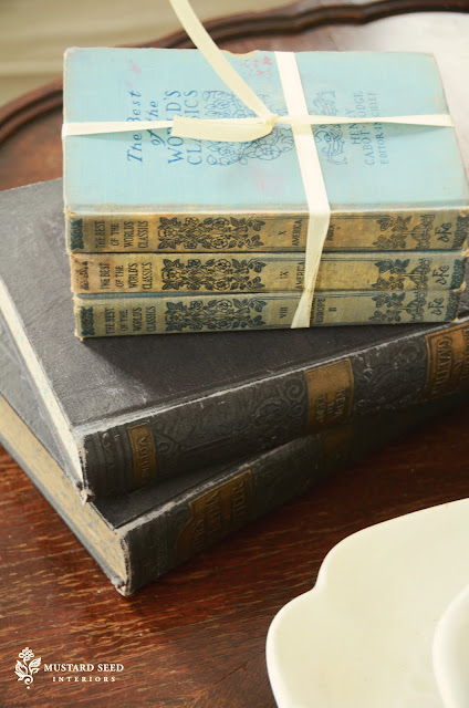 I also bought some book bundles that I scattered around the room. It's hard for me to resist old books...